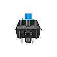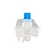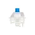 A CAD high-precision component made of plastic polymer specifically for the Cherry MX creates the pre travel and the keystroke feel between the upper housing and coil spring. The key cap is attached on the upper part of the stem.The switching slide of the CHERRY MX BLUE consists of two parts. As soon as the switch is pressed and the white component hits the blue stem after the tactile point and goes down, a "click sound" is triggered. Due to the bulge on the TLS Surface, the switch also sends acoustic feedback in addition to the noticeable one, which means that the exact position of the trigger is communicated to the user.